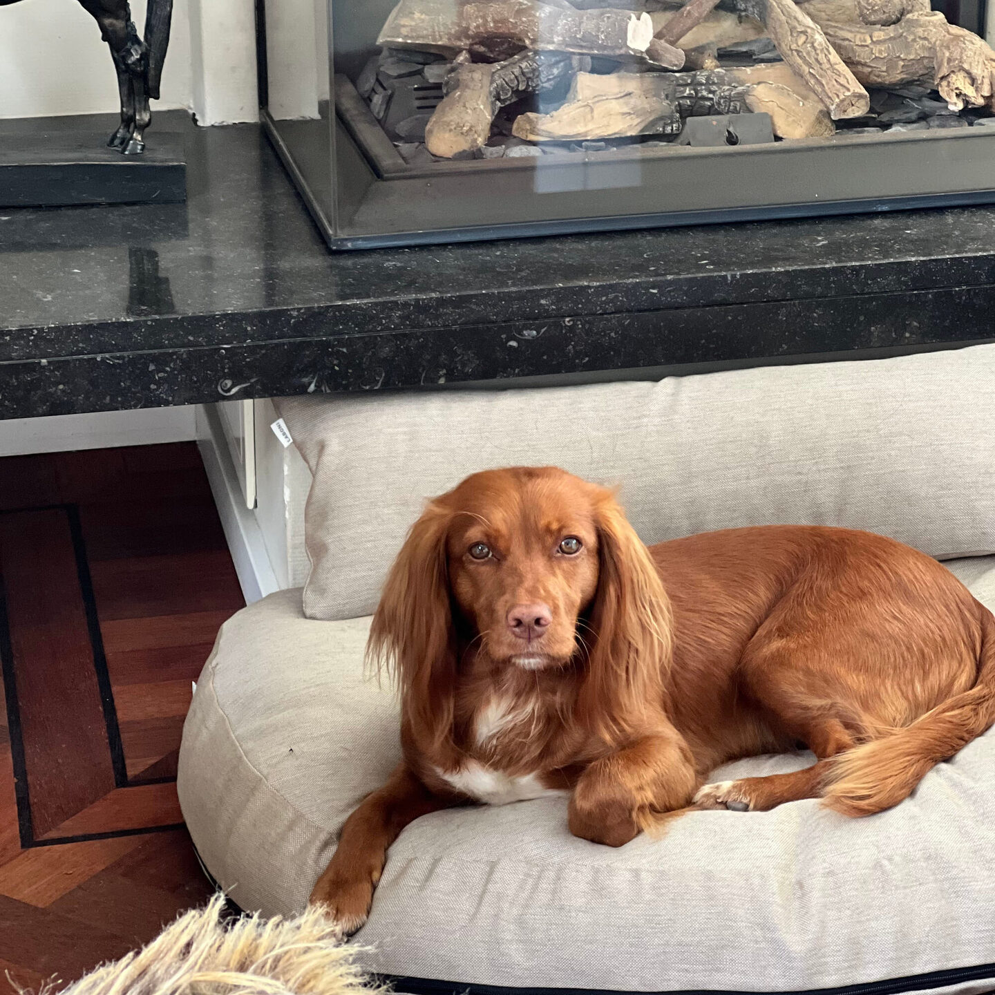 Deze dik gewatteerde loungematras van LABONI is Skylers favoriete rustplek voor buiten (maar kan uiteraard ook binnen). Aangezien Skyler vaak nat is, is de outdoorstof een grote pre. De duurzame hoes is aangenaam zacht en het oppervlak is waterafstotend en schimmelbestendig, zodat het ook na vele wasbeurten en regenbuien permanent weerbestendig blijft. Ook als de hondenmand permanent aan de zon wordt blootgesteld, behoudt de stof zijn licht- en kleurvastheid. De uitgebreide weefstructuur biedt extra comfort, waardoor hondenharen niet diep in de stof kunnen doordringen en gemakkelijk kunnen worden uitgeborsteld.