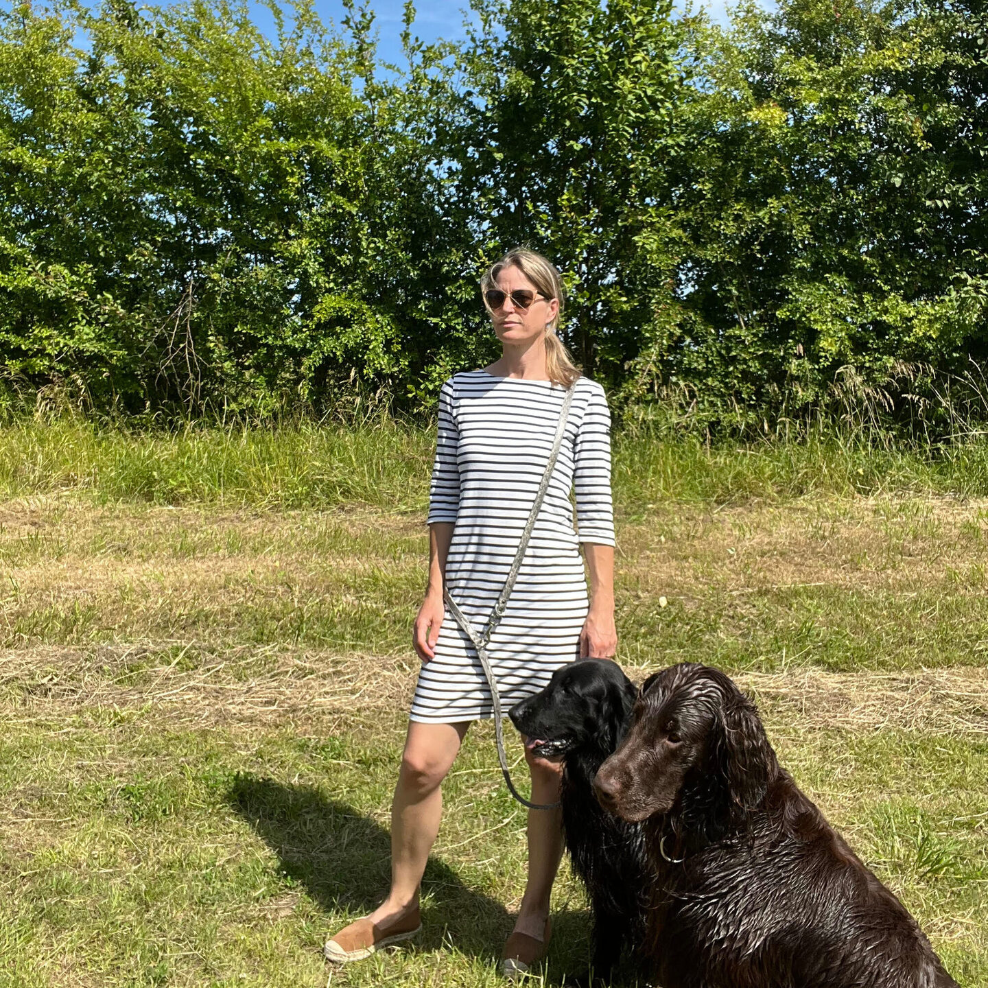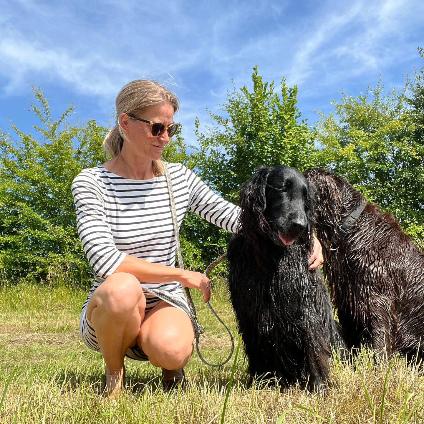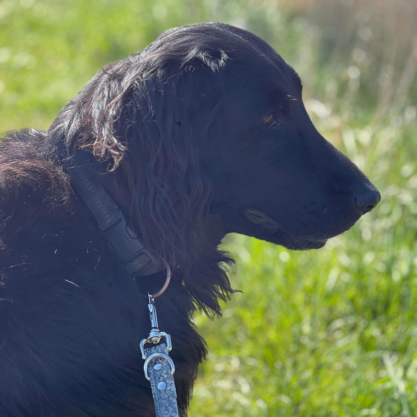 Deze modieuze hondenriem van Studio Proud staat helemaal leuk bij Skyler, onze zwarte Flatcoat. Perfect te combineren met alle verschillende modestijlen van nu. Je kunt de riem gebruiken voor wandelingen waarbij je je hond niet constant in je hand hoeft te houden. Hierdoor heb je alle ruimte om tassen te dragen, maar ook om te gaan joggen met je hond. Ik gebruik de riem met name als extra lange riem voor bijvoorbeeld in het bos of juist de korte variant als ze dicht bij me moeten blijven.
