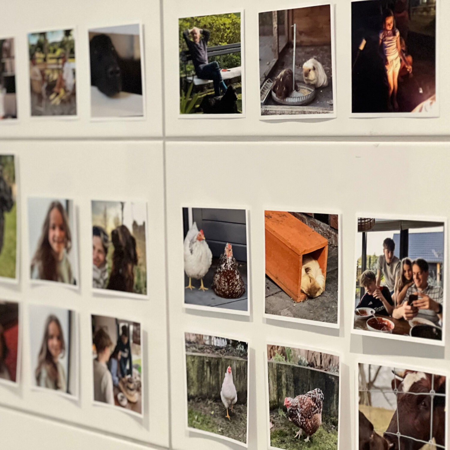 Maak een leuke fotowand van je leukste foto’s op dat moment op je telefoon. Vul de wand elke maand aan met nieuwe foto’s. Zo geniet je het hele jaar door van je foto’s.