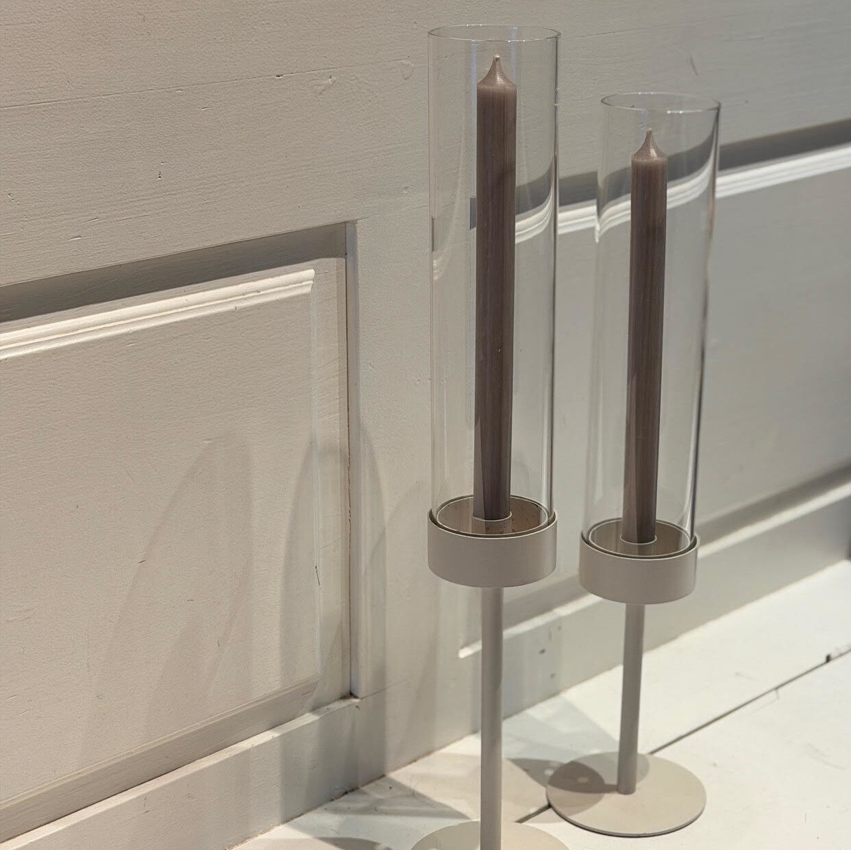 Deze exclusieve kandelaren zijn perfect voor op de feesttafel. De glazen kokers in combinatie met de hoogte van de kandelaren zorgen voor een ware eyecatcher op tafel.