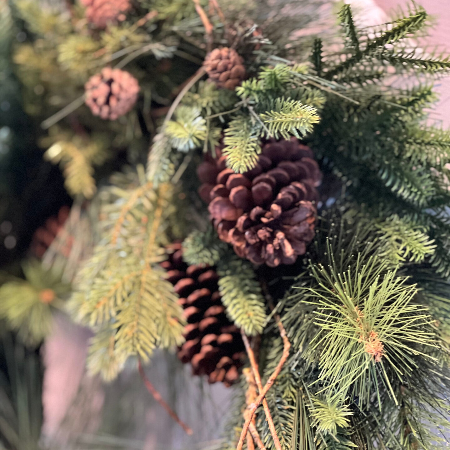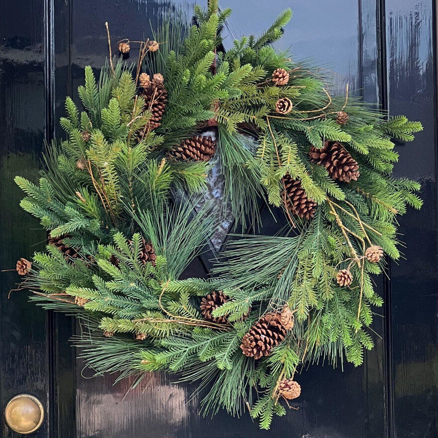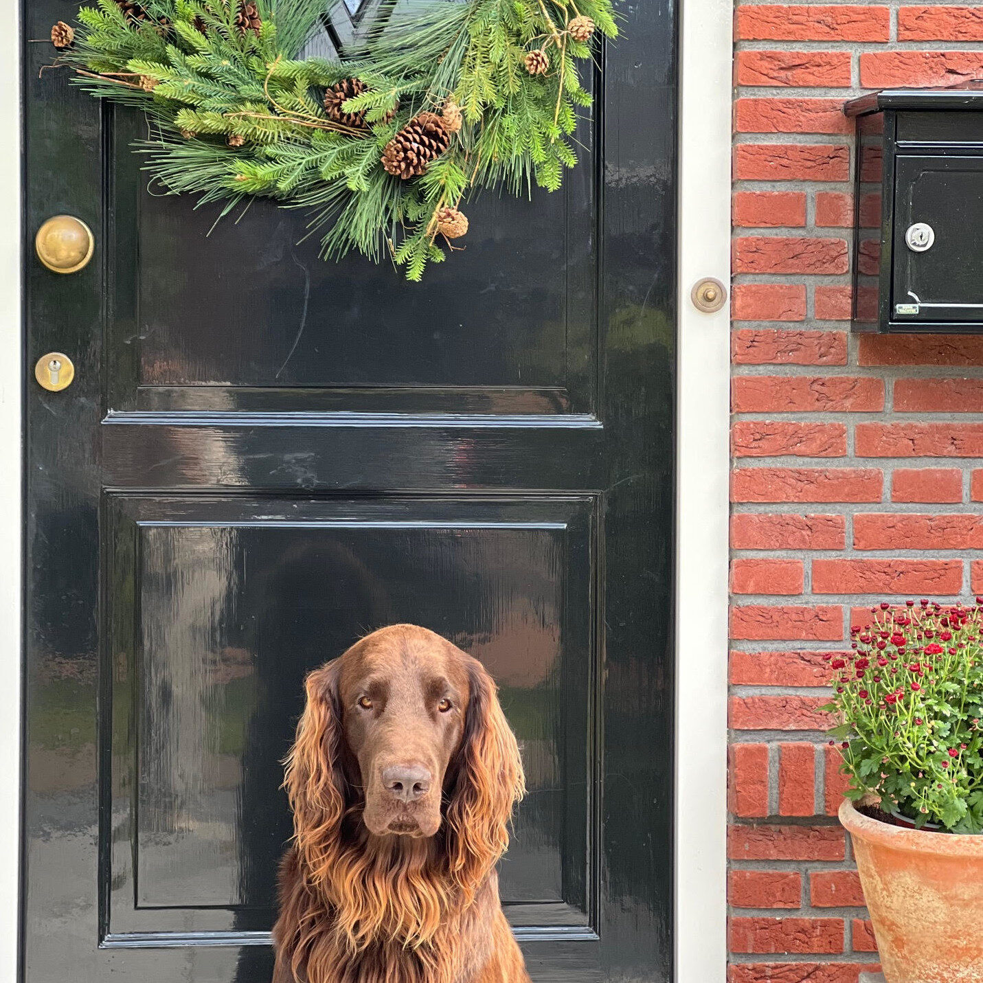 De krans is gemaakt van kunstplanten en kan elk jaar opnieuw gebruikt worden. Bij aanvang van de herfst kun je de krans extra versieren met paddenstoelen en/of andere herfstattributen. Met kerst kun je de krans dan weer aanpassen. Maar gewoon clean is hij ook super mooi en rustig.