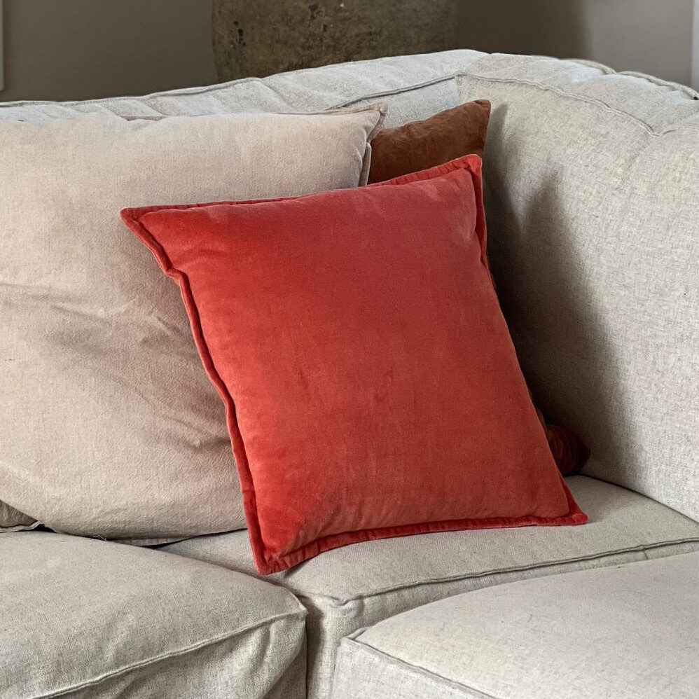 Haal de herfstkleuren in huis met dit fluwelen kussen in de kleur papaya! De zachte, stevige stof en de volle vulling maken dit een heerlijk kussen voor op de bank, maar kan ook in een stoel.
