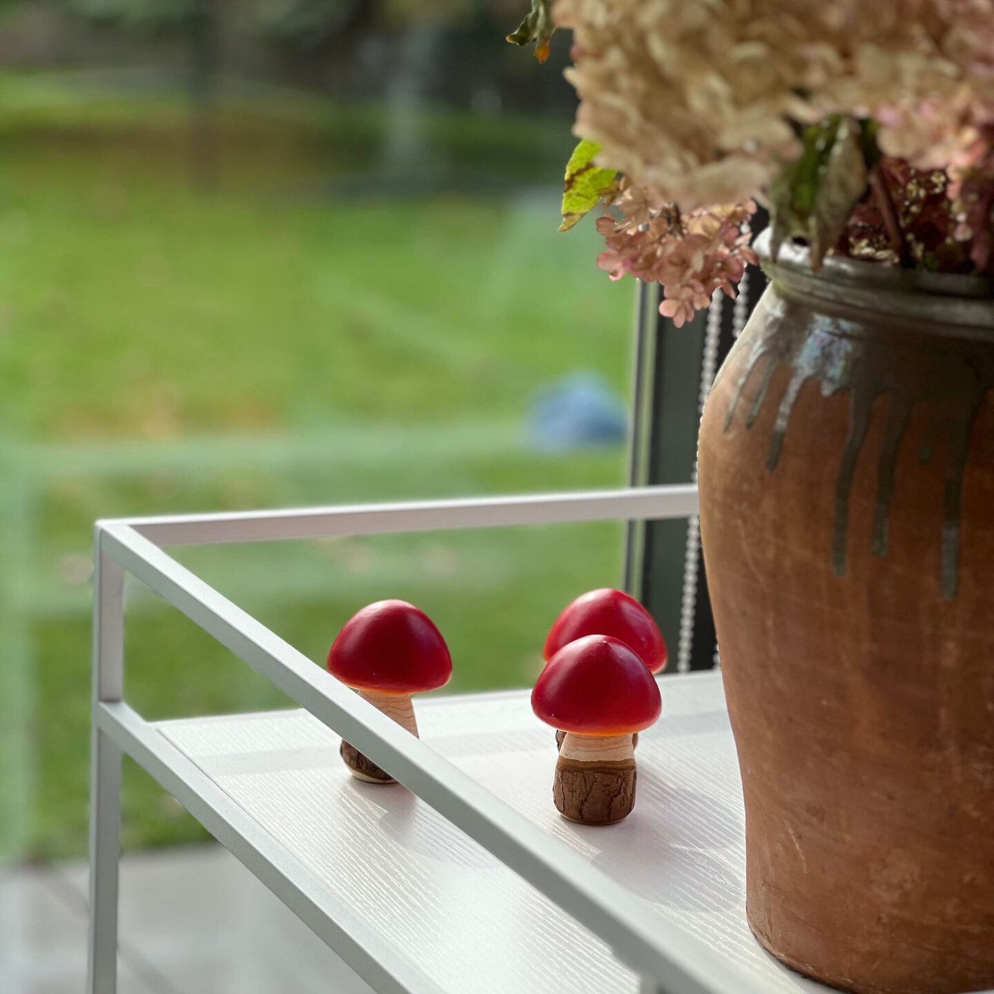 Paddenstoelen horen er helemaal bij in de herfst. Door zijn mooie voet, realistische vorm en prachtige rode kleur oogt deze paddenstoel heel natuurlijk. De prijs is voor een set van drie paddenstoelen.