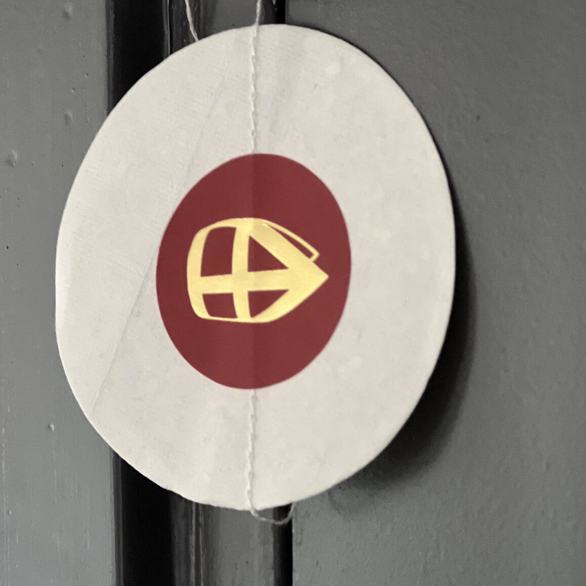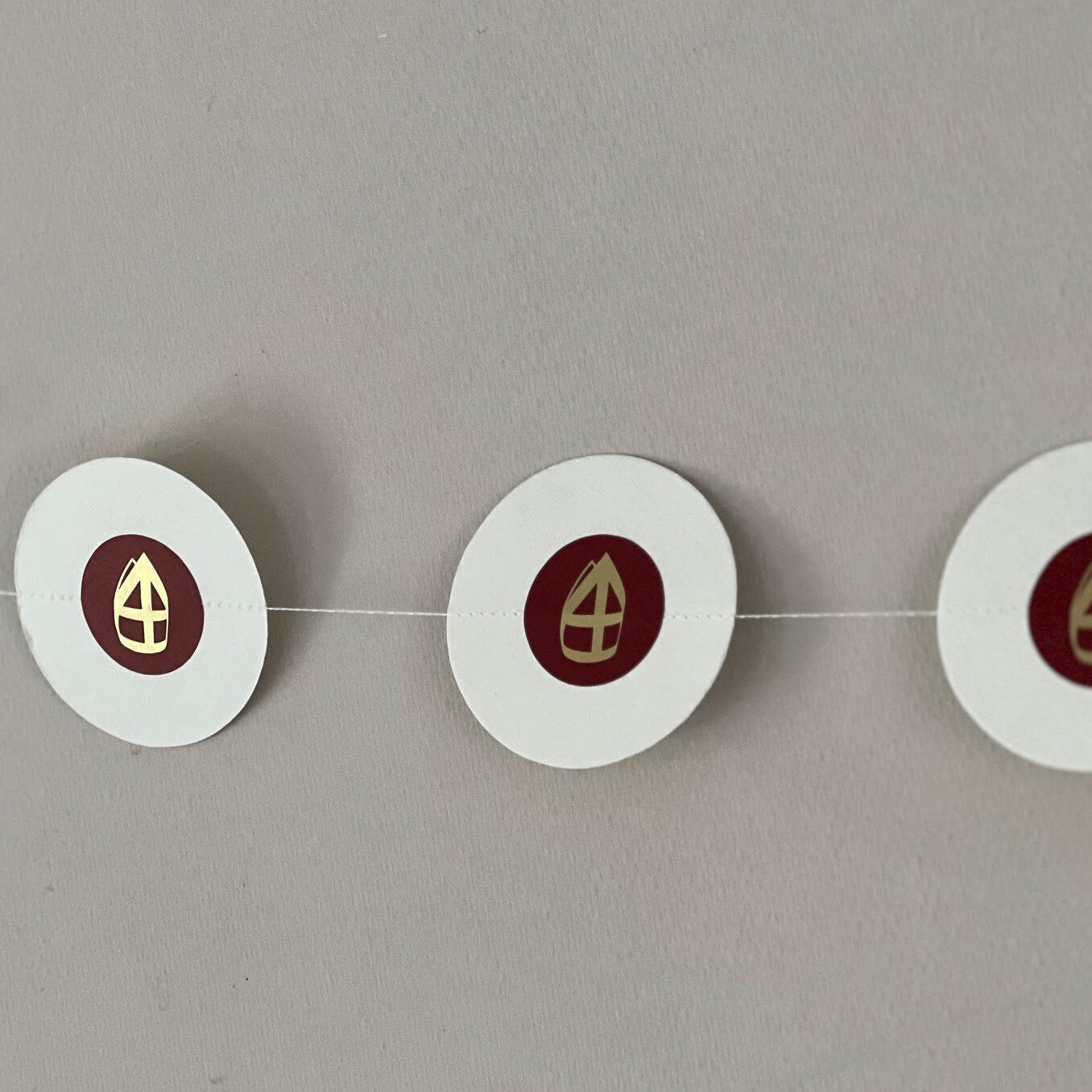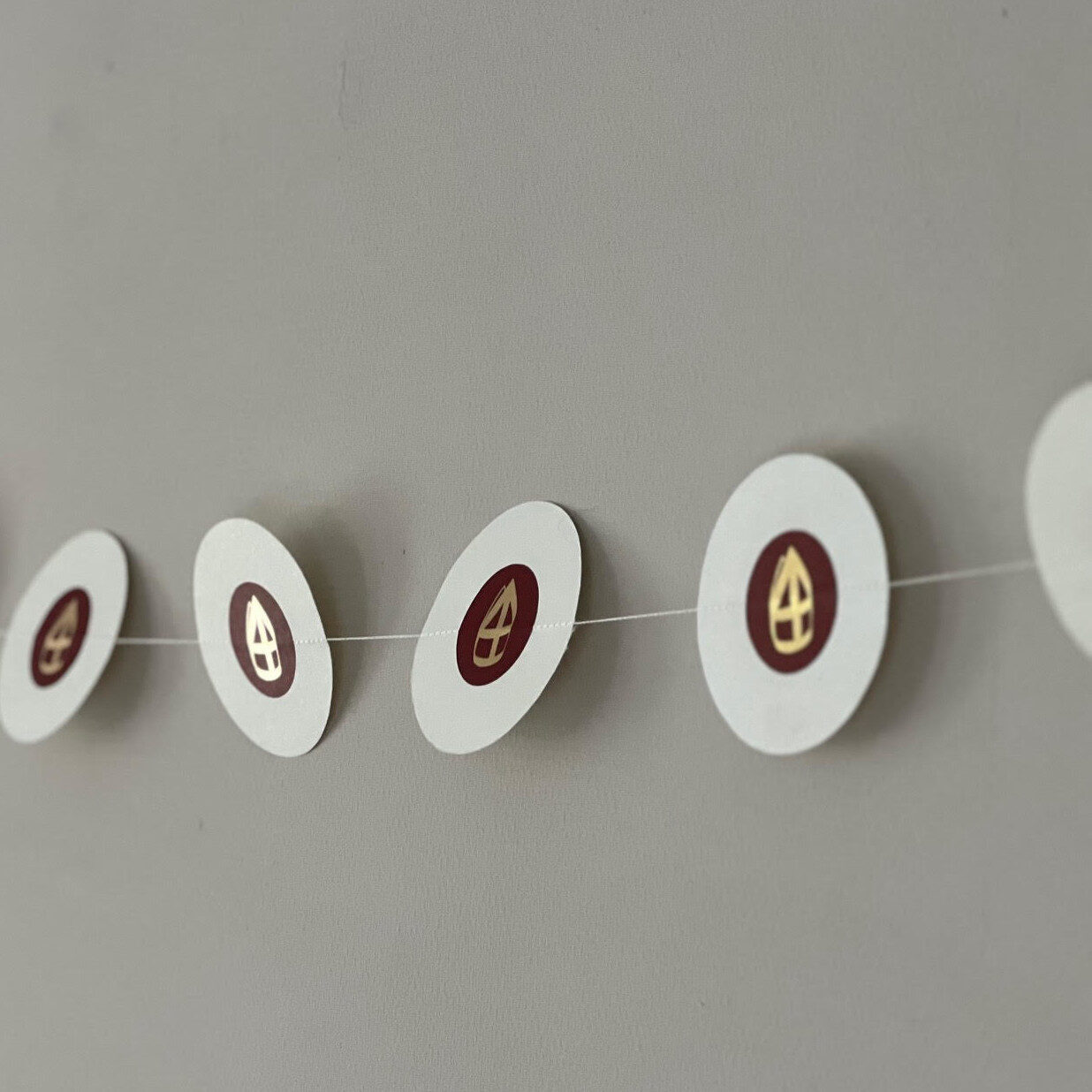 De Sinterklaasstickers in het voorbeeld worden meegeleverd. Ze zijn ook weer verwijderbaar waardoor de slinger na Sinterklaas ook gebruikt kan worden.