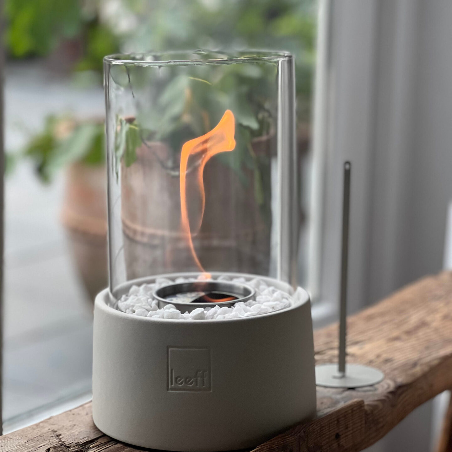 Deze mooie tafelhaard van Leeff geeft een geweldige sfeer in huis of in de tuin. Een echte eyecatcher voor op tafel. De Stonefire brandt op vloeibare bio-ethanol (geen gel), deze natuurlijke brandstof geeft geen geur en/of roet af. De tafelhaard is eenvoudig in gebruik en wordt geleverd inclusief steentjes en vlamdover. Perfect voor ieder seizoen en door het strakke, basic design goed te combineren met andere woon- of tuinaccessoires.