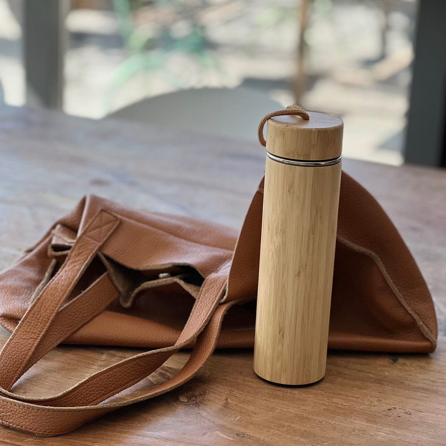 Deze elegante en duurzame thermosfles gemaakt van bamboe en roestvrij staal is een perfect cadeau voor vrienden en familie die vaak onderweg zijn. De buitenkant is van natuurlijk bamboe, wat een warme en natuurlijke uitstraling geeft. Het binnenwerk is van roestvrij staal, waardoor de inhoud goed op temperatuur blijft. Ik gebruik de thermofles ook veel als we buiten thee en/of koffie drinken; dus ook voor thuisgebruik vind ik hem ideaal. De combinatie van natuurlijke en duurzame materialen maakt dit een praktisch en milieuvriendelijk product.