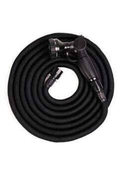 De slangen zijn gemaakt van een zeer duurzaam textiel en binnenin een latexslang voor de beste kwaliteit. Deze set bestaat uit de tuinslang Deluxe 25 meter, een super spuitpistool met 10 programma's, slanghanger in mat metaal, fluwelen tas.