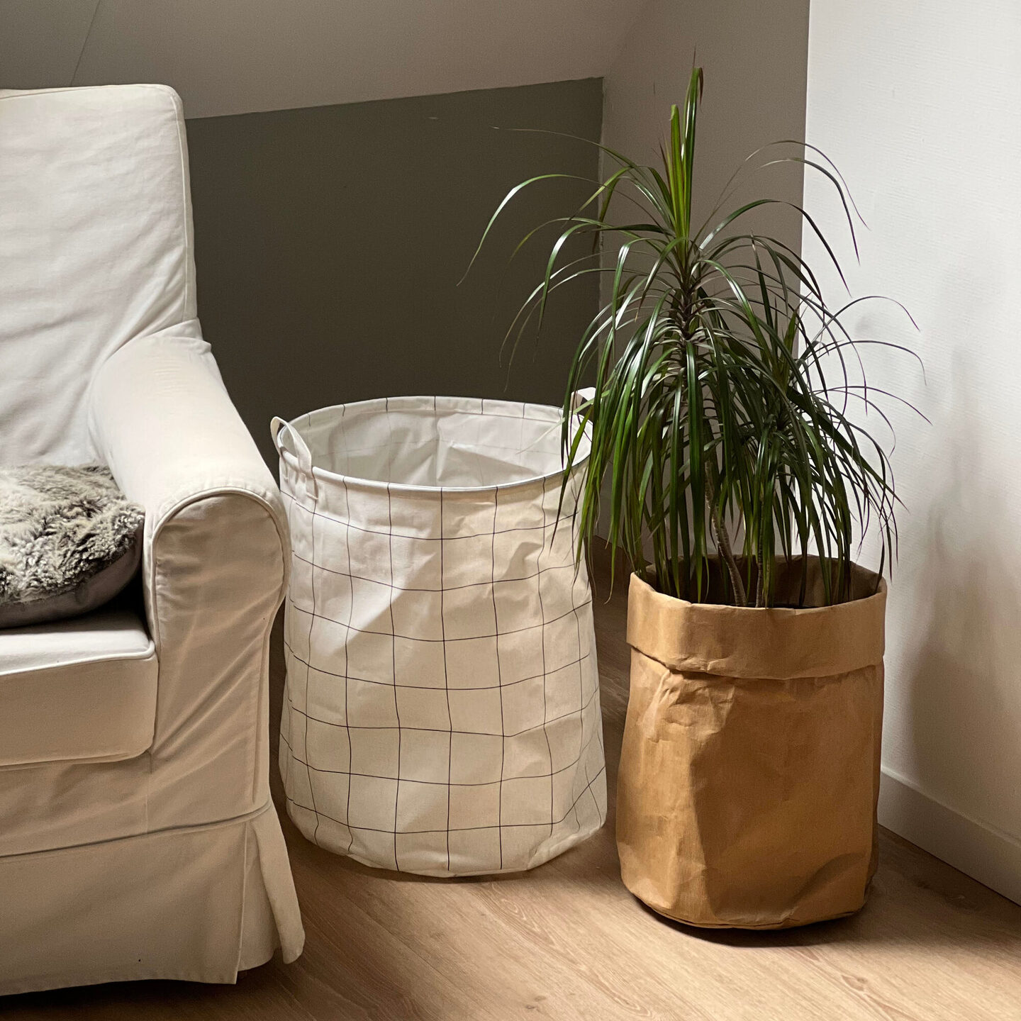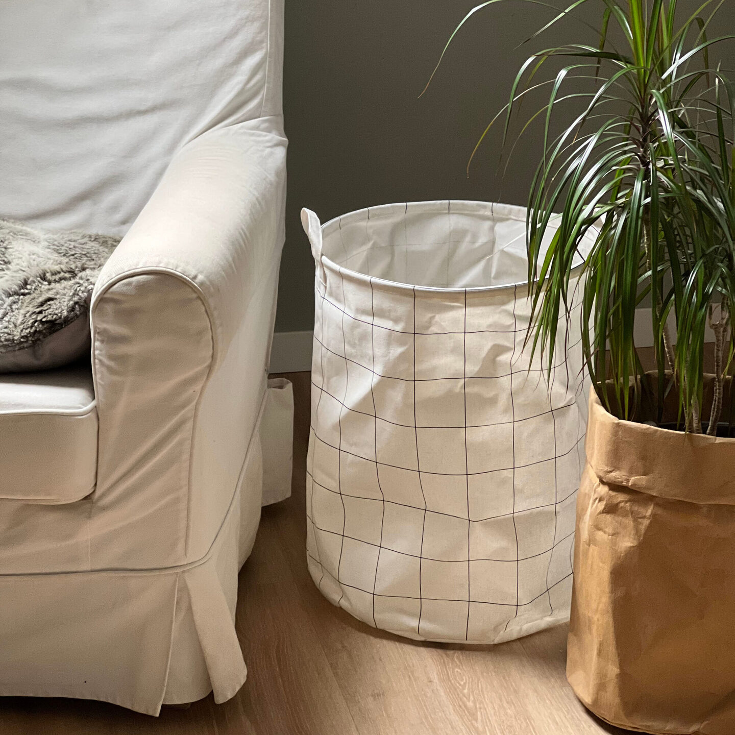 Deze ruime mand van House Doctor kun je overal voor gebruiken. Hij is ideaal te gebruiken als wasmand, maar ik gebruik hem op de jongenskamer voor opslag. De mand is licht en heeft twee grepen; je verplaatst hem heel gemakkelijk.